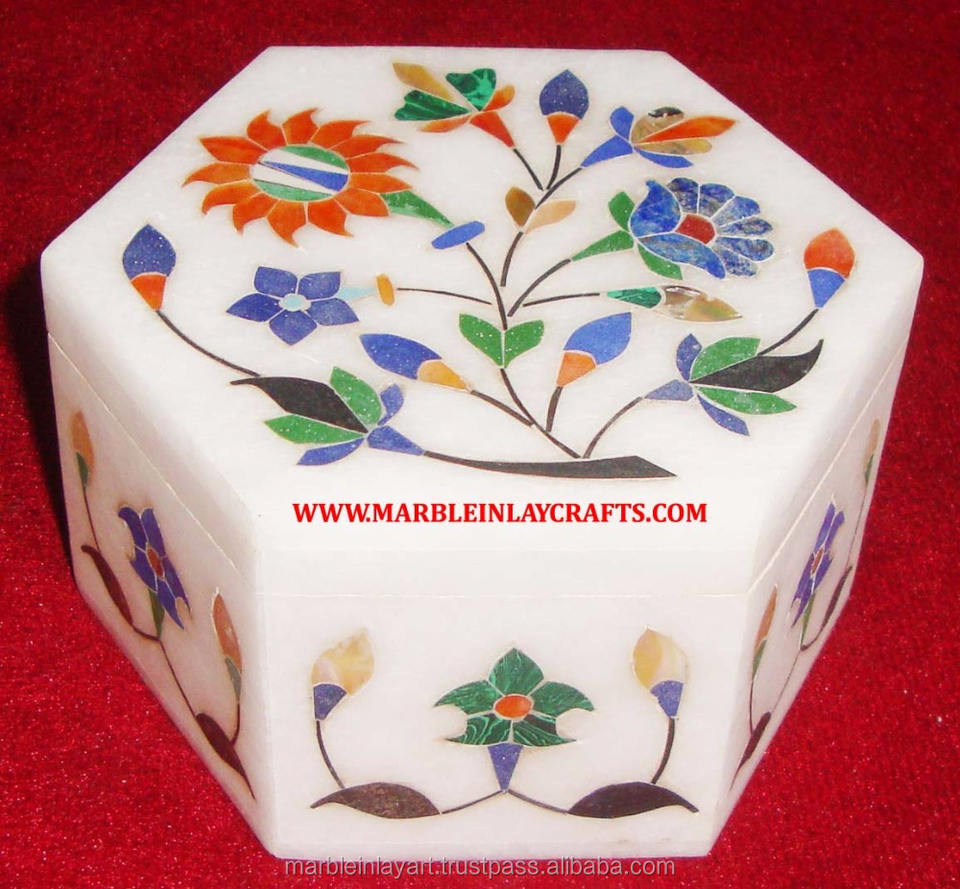 Caja de piedra con diseño incrustado, decoración para el hogar