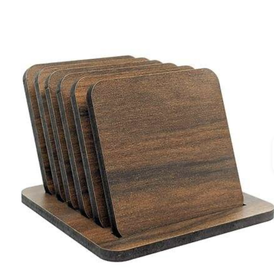 Juego de Posavasos Decorativos Hechos a Mano de Madera de Nogal con Soporte