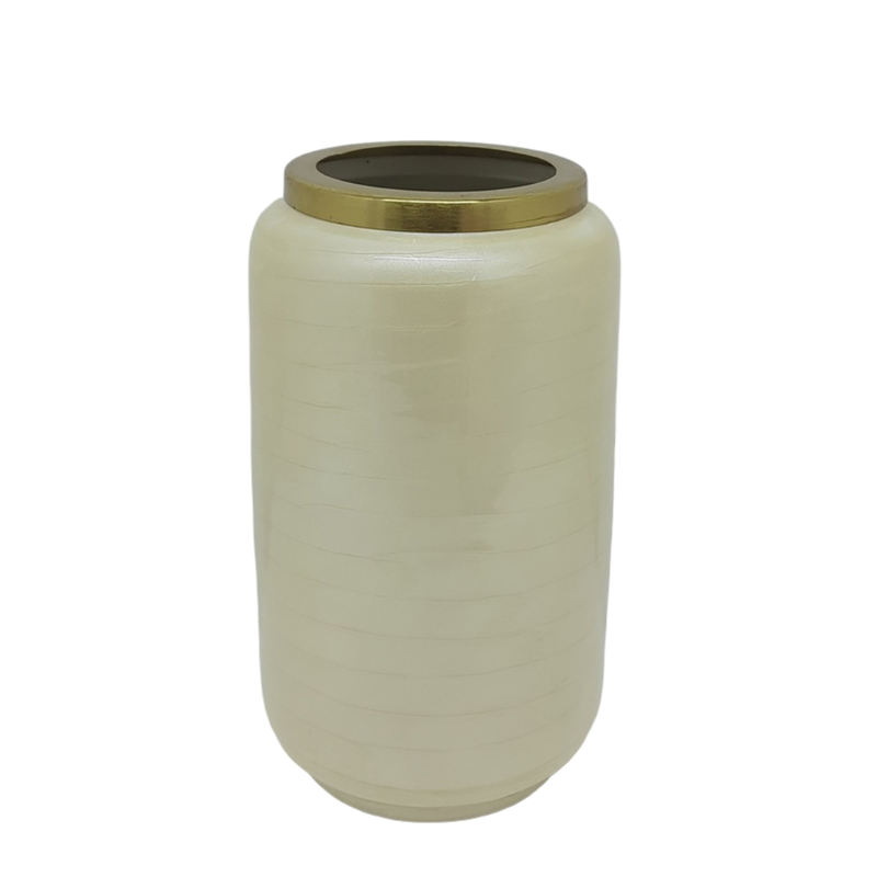 Jarrón Decorativo de Hierro para Mesa, Diseño Moderno con Recubrimiento en Polvo Crema Brillante, para Decoración de Pared y Suelo del Hogar
