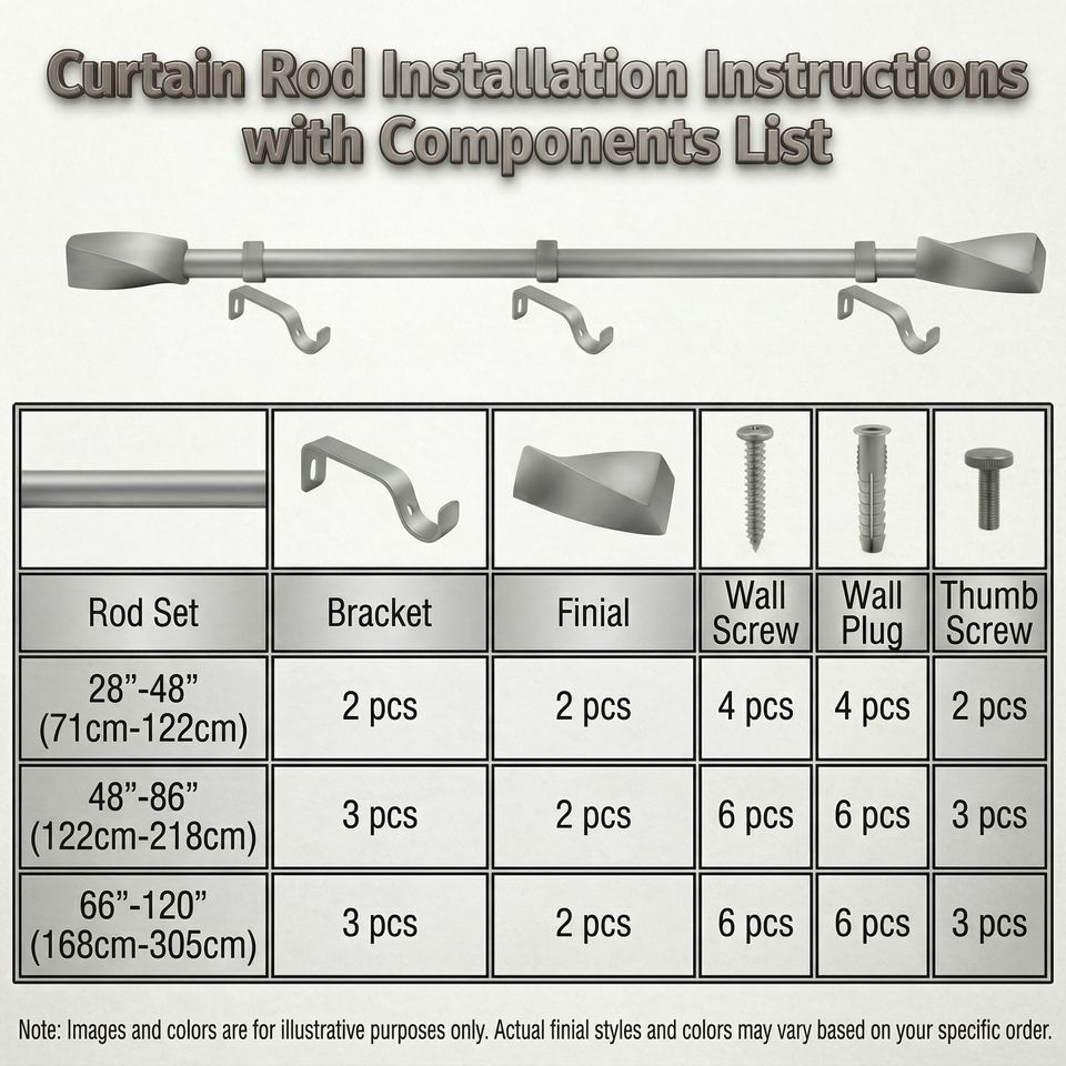 Juego de barras de cortina metálicas decorativas para el hogar
