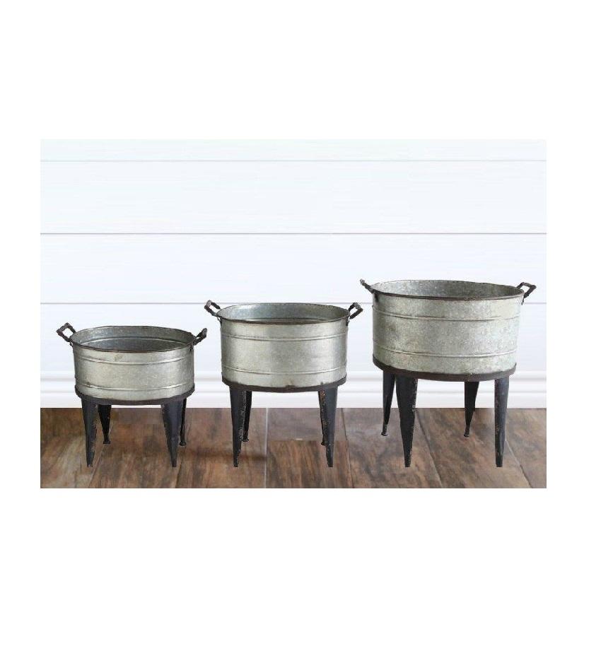Description:Galvanized Iron Round Planter With Handles Acid Finishing