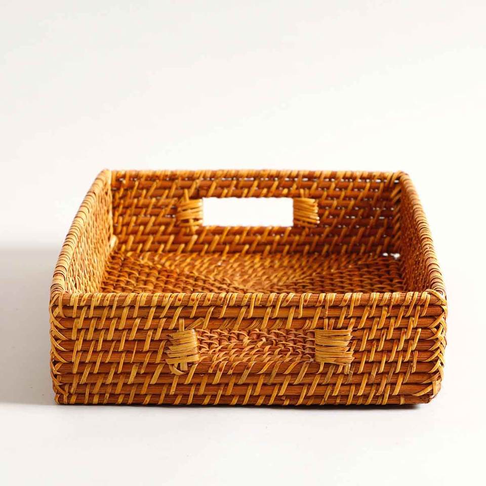 Cesta de Almacenamiento Decorativa para el Hogar, de Madera de Palma y Ratán, Forma Rectangular, Acabado Personalizado, para Mesa de Comedor, Baño, Lavabo, Lavandería