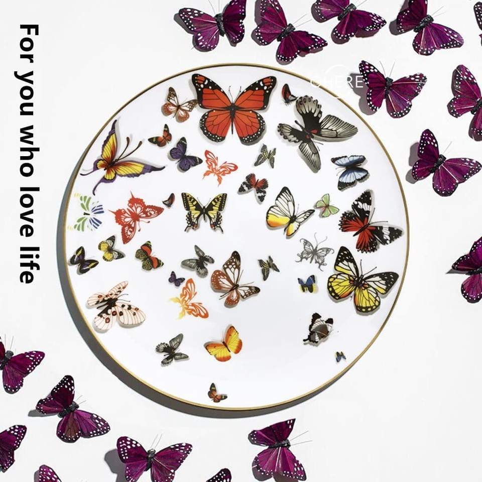 Plato de Porcelana con Borde Dorado Estilo Nórdico para Comedor, Vajilla de Porcelana Fina, Plato de Cerámica con Borde Dorado y Diseño de Mariposa para Bodas