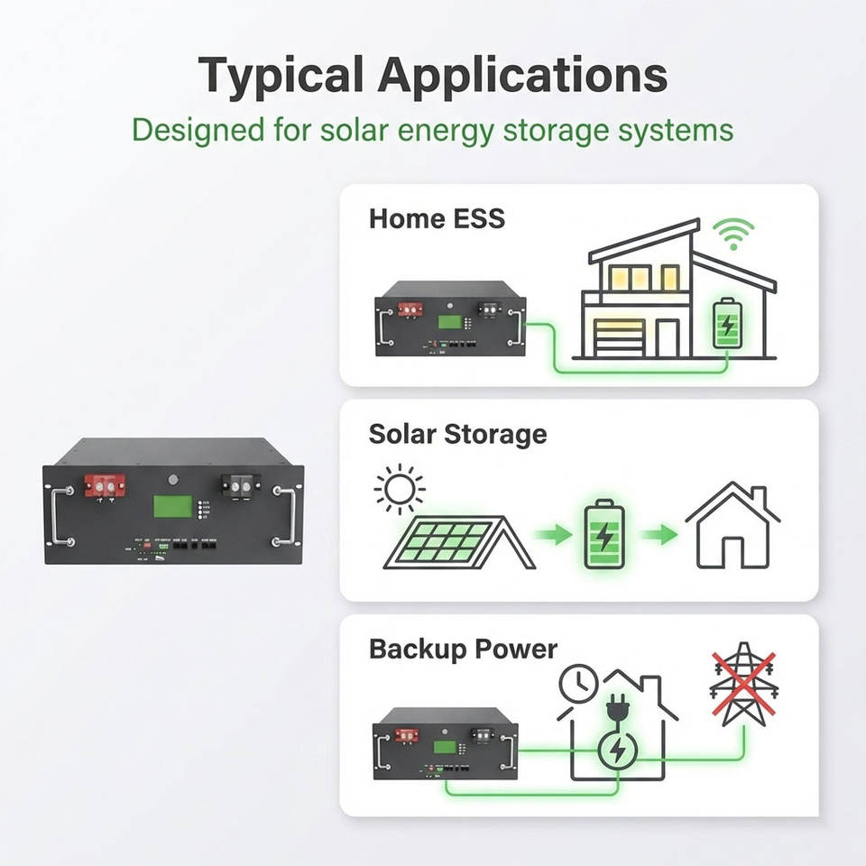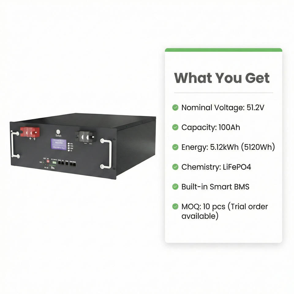 Sistema de Almacenamiento de Energía para el Hogar, Batería LiFePO4 de 51.2V 200Ah para Montaje en Rack, 10kWh, Respaldo de Energía Solar para el Hogar, 6000 Ciclos