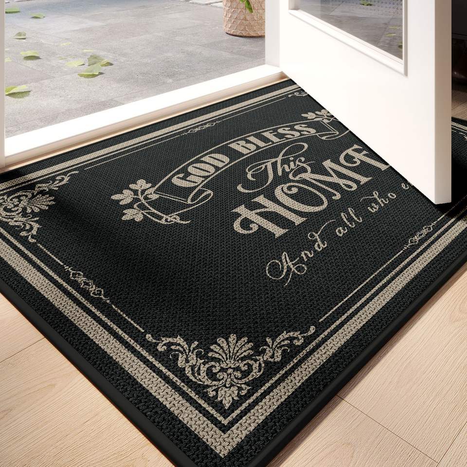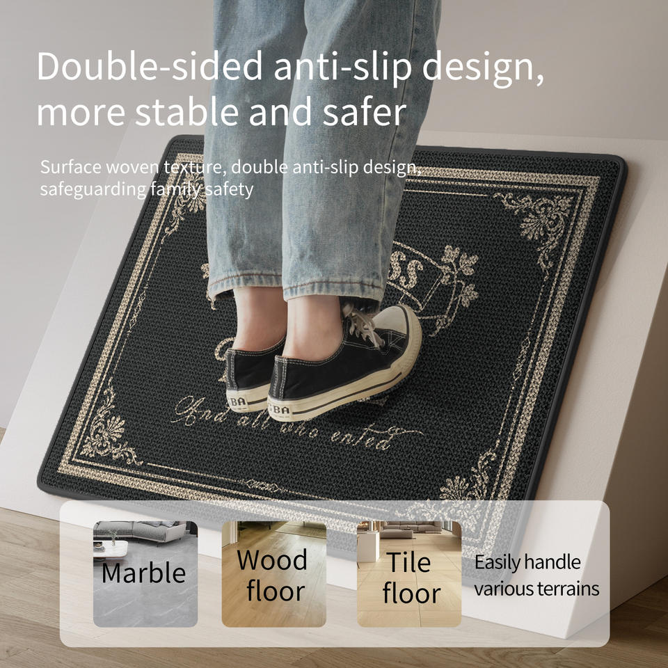 Alfombra de entrada rectangular de poliéster antideslizante con diseño de medallón para uso en interiores