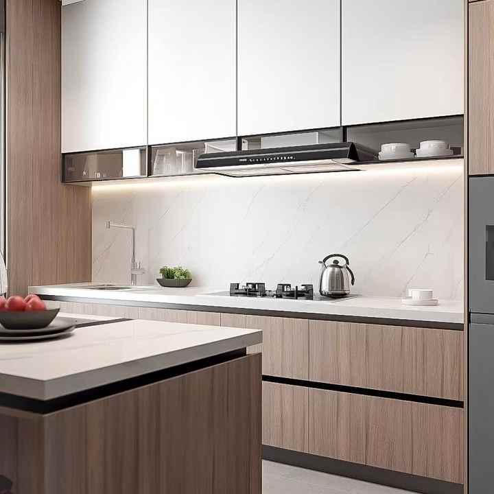Muebles para el hogar Gabinetes de madera personalizados Muebles para el hogar modernos personalizados de América del Norte Juego de gabinetes de almacenamiento de cocina de madera blanca