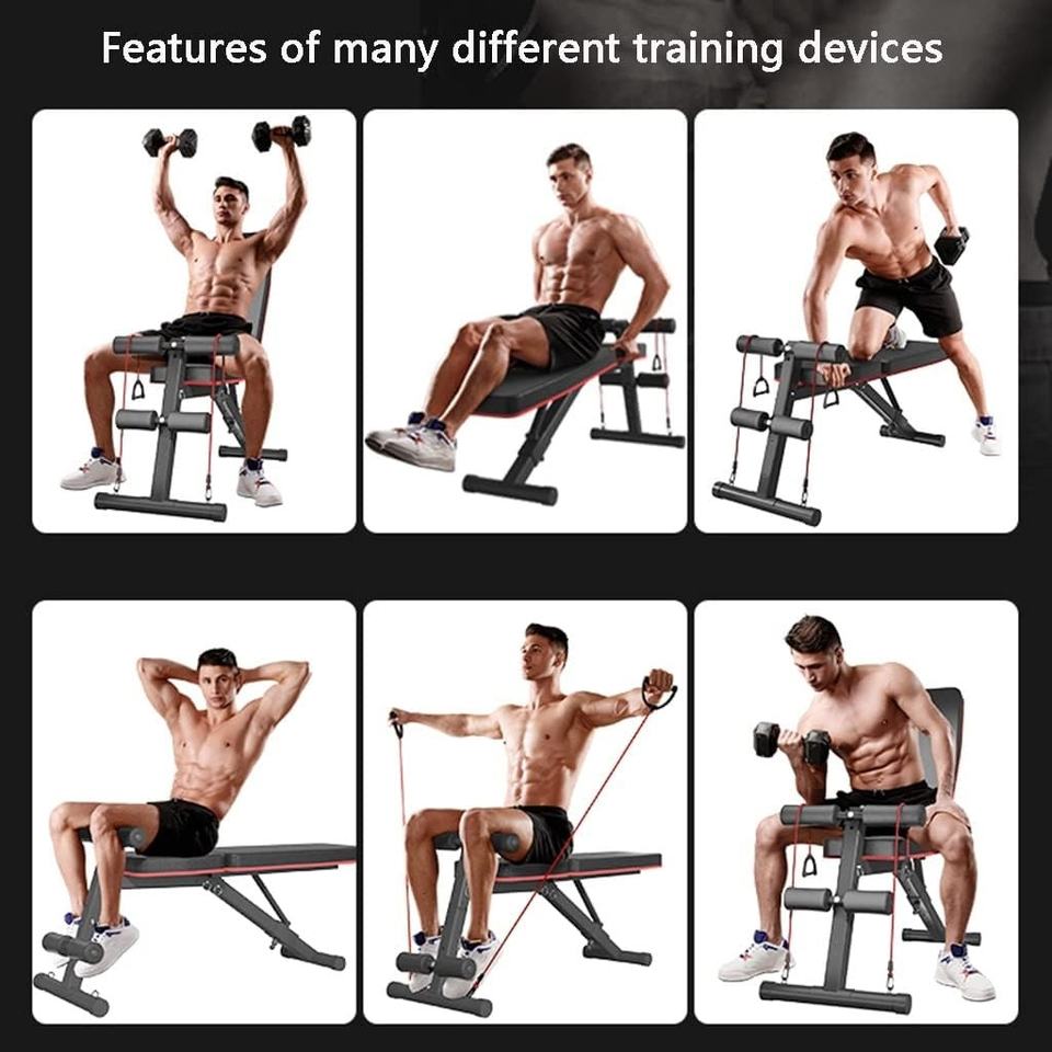 Banco de Entrenamiento de Fuerza para Gimnasio en Casa, Diseño Plegable para Espacios Reducidos, Ejercicios de Press de Banca, Abdominales y Remo