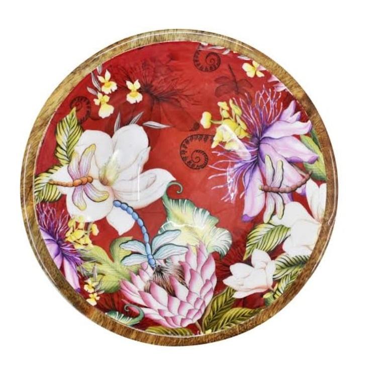Tazón de Madera para Servir Postres y Alimentos, Decoración de Mesa para el Hogar, Hotel o Restaurante, Tazón de Mango con Acabado Esmaltado Interior