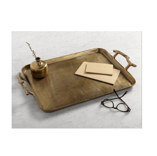 Decoración Interior del hogar Piezas de decoración antiguas Accesorios decorativos Bandejas de aluminio de servicio redondas y doradas personalizadas para el hogar