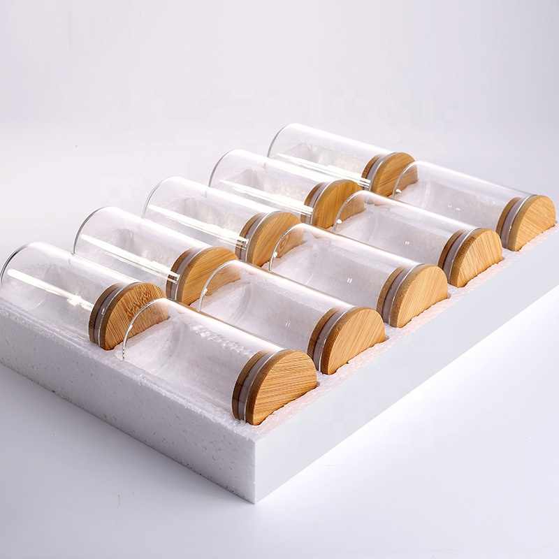 Nombre del producto:Botella y tarros de cristal del almacenamiento con las tapas y las etiquetas de Bambú