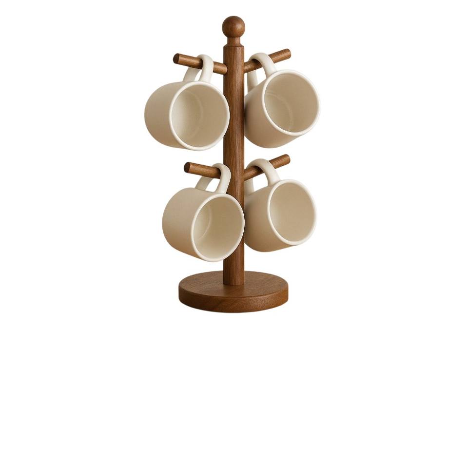 Organizador de Tazas de Bambú para Cocina, Soporte de Madera para Tazas de Café, Juego de Soportes Naturales Ecológicos con 6 Ganchos para Exhibición y Almacenamiento de Tazas