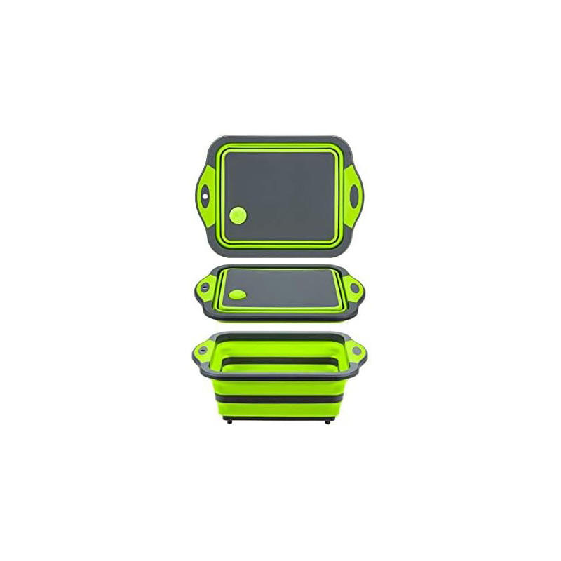 Cesta coladora de agua verde plegable para cocina y barbacoa con tabla de cortar de plástico y contenedor