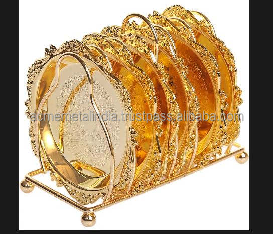 Posavasos de acero inoxidable para cocina casera, posavasos de té y tazas chapados en oro y plata de alta calidad, posavasos de té de estilo clásico