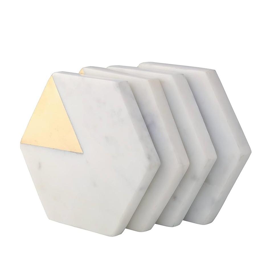 Posavasos de Mesa para el hogar, artículos de cocina, alfombrillas y almohadillas, muy buen precio, el mejor fabricante, posavasos de mármol pulido brillante con latón