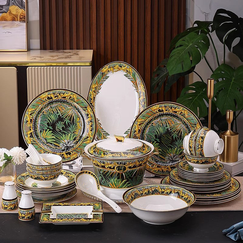 Juego de Vajilla de Lujo para el Hogar, 58 Piezas, Cerámica, Platos Personalizados para Bodas Reales, Vajilla de Porcelana Fina