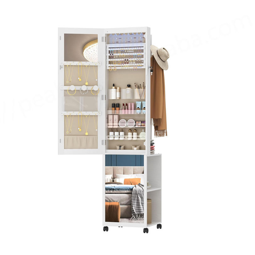 Muebles de almacenamiento modernos para el hogar Espejo de pie Gabinete de joyería con espejo con ruedas