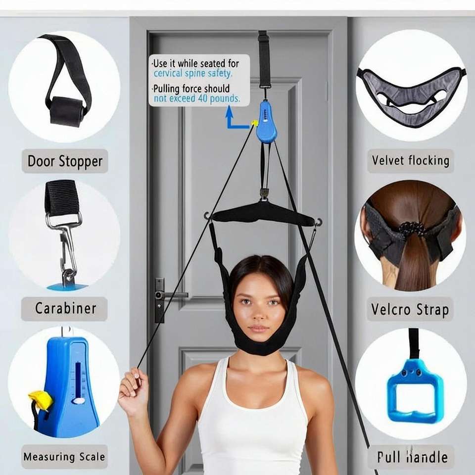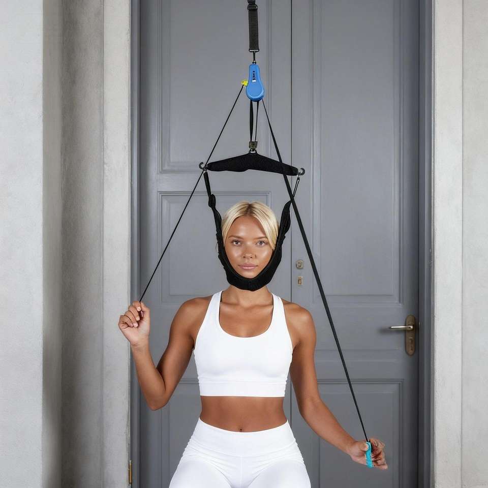 Dispositivo de tracción cervical para el hogar, cinturón de tracción manual montado en la puerta para alivio de la columna cervical, azul real