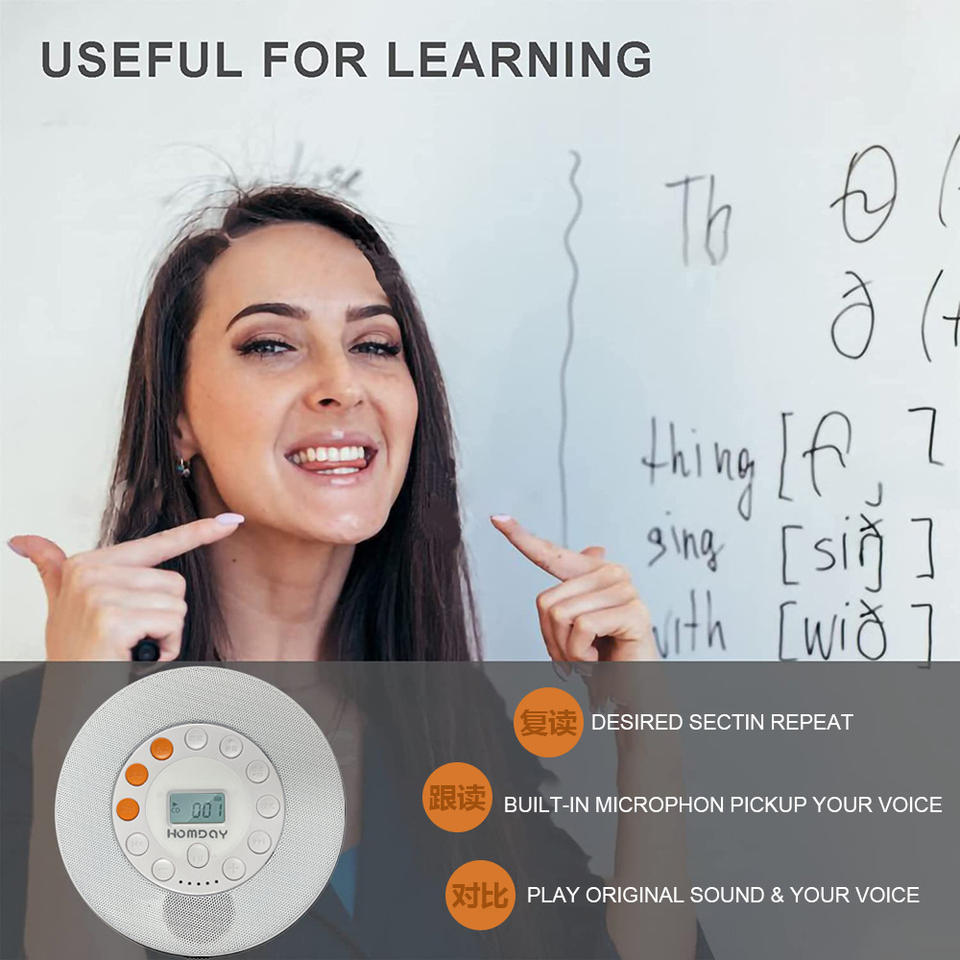 Altavoces estéreo duales con batería recargable portátil para el hogar, reproductor de CD USB para coche, grabadora en inglés, álbum, reproductor de música de CD