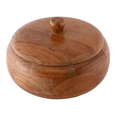 Caja Redonda de Madera para Guardar Roti y Chapati para el Hogar o Restaurante, con Tapa de Latón, Caja de Madera para Chapati con Alto Pulido