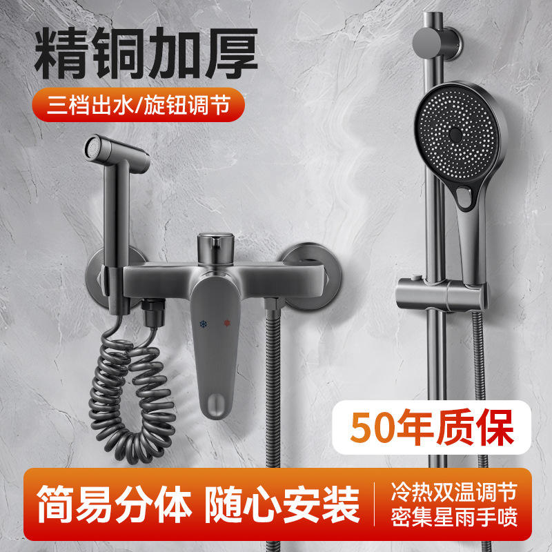 Juego de Ducha Simple para el Hogar, Tipo Split, de Cobre, Montado en la Pared, con Pistola de Rociado y Función de Lluvia