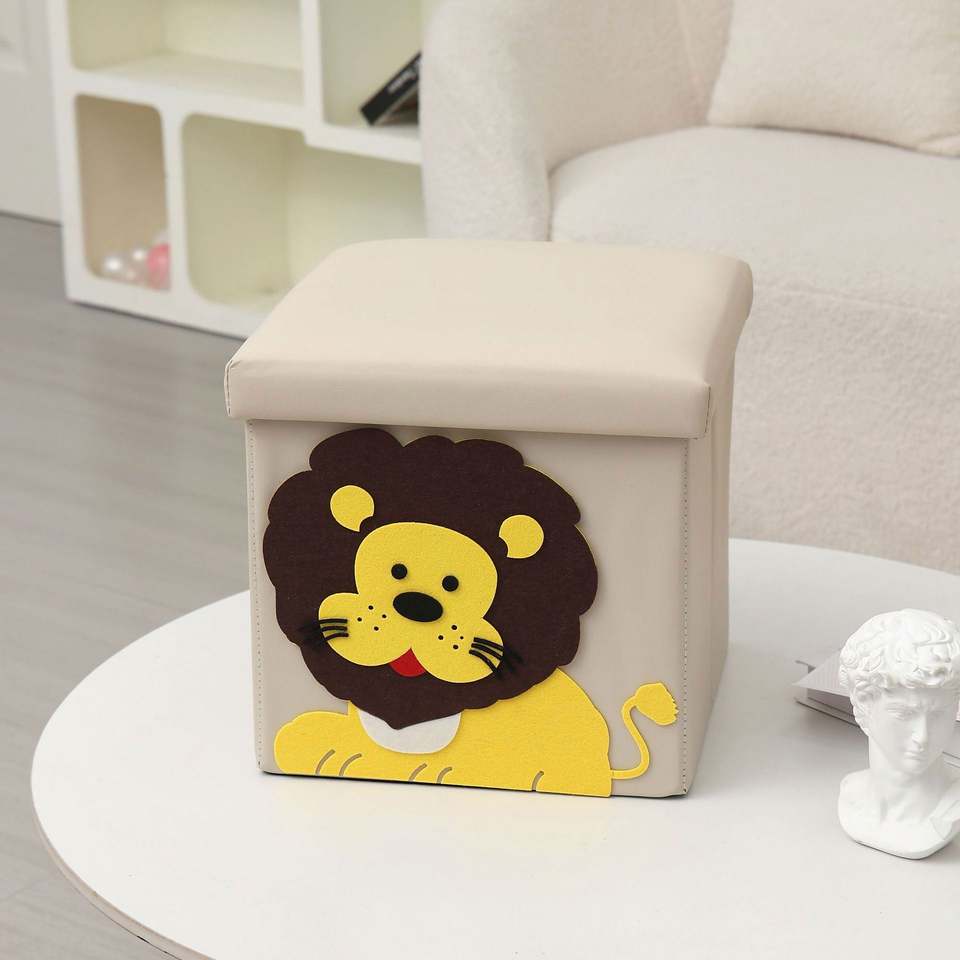 Taburete de Almacenamiento para el Hogar, Plegable, Caja de Juguetes para Niños, Otomana con Tapa