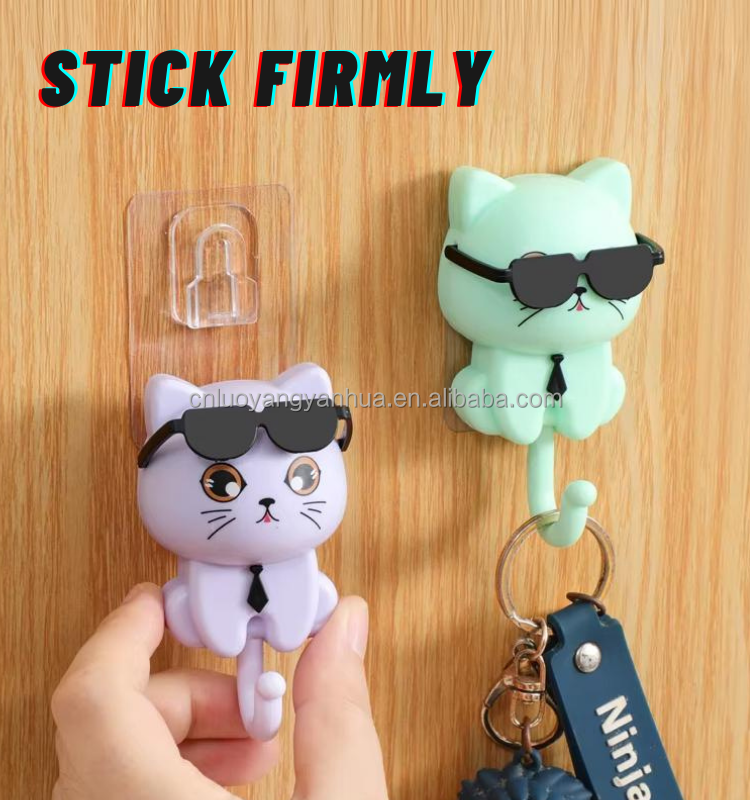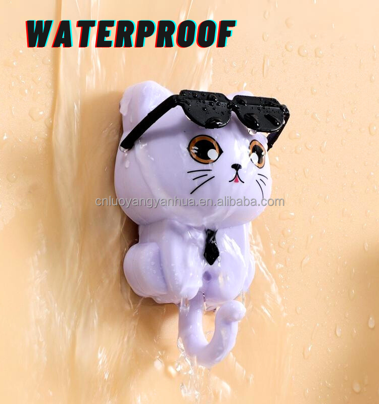Almacenamiento en el hogar Utilidad Decoraciones de pared Adhesivo creativo Gato Abrigo Titular Perforación Gratis Ganchos para llaves Perchas