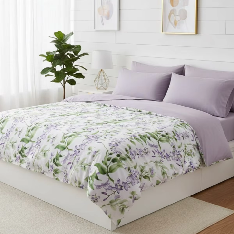 Juego de Ropa de Cama de Lavanda para el Hogar, 100% Algodón, Ropa de Cama Floral, Funda de Edredón Suave y Transpirable, Fabricante OEM