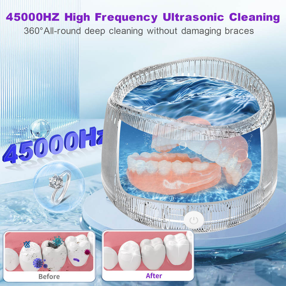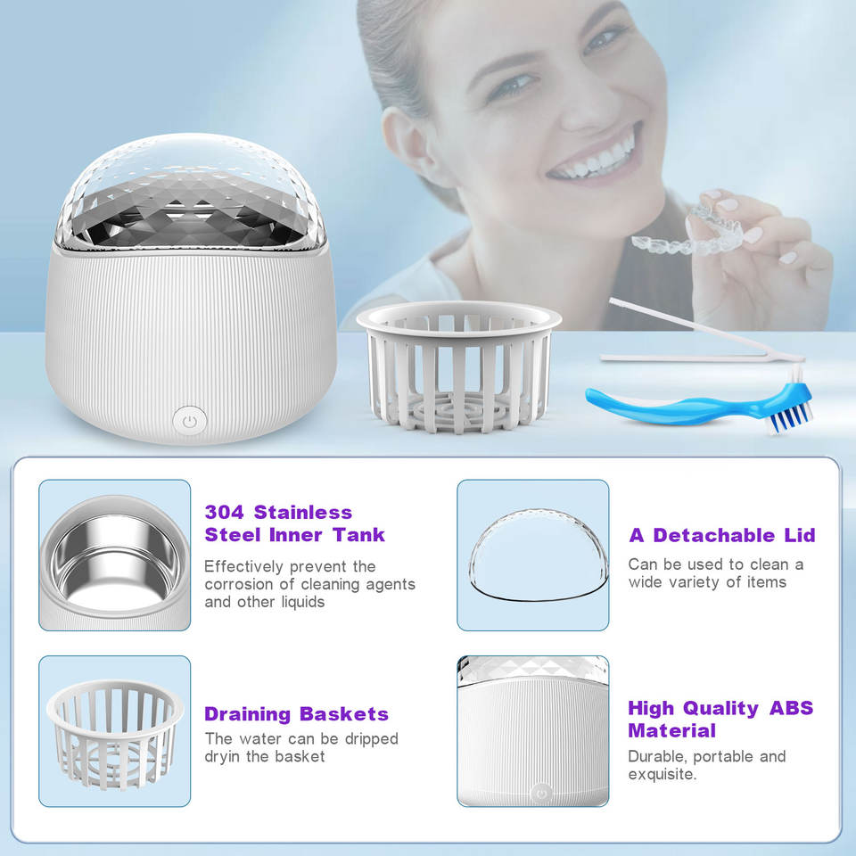 Limpiador Ultrasónico de 40kHz para Uso Doméstico, Capacidad de 200ml, para Joyería, Dentaduras Postizas, Retenedores, Protectores Bucales - Alimentación USB/Eléctrica
