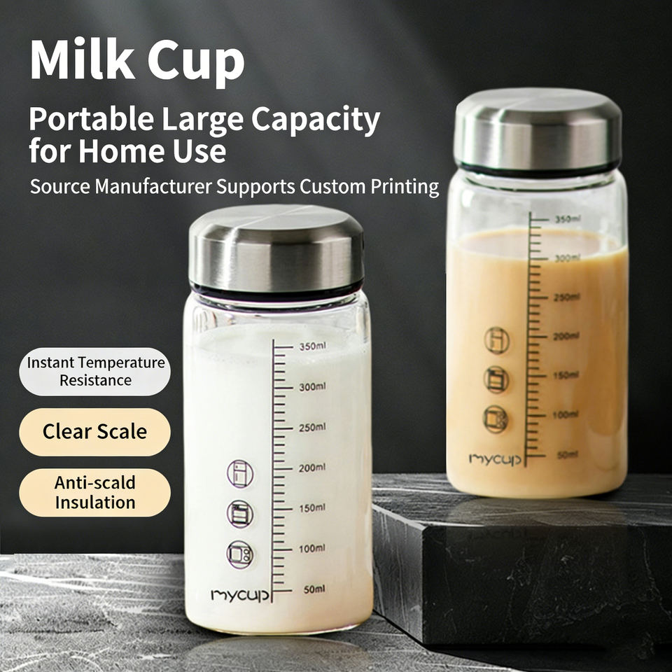 Vaso de Vidrio Minimalista para Uso Doméstico, Portátil, de Gran Capacidad, para Leche, Agua, Café, Desayuno, con Tapa y Graduaciones