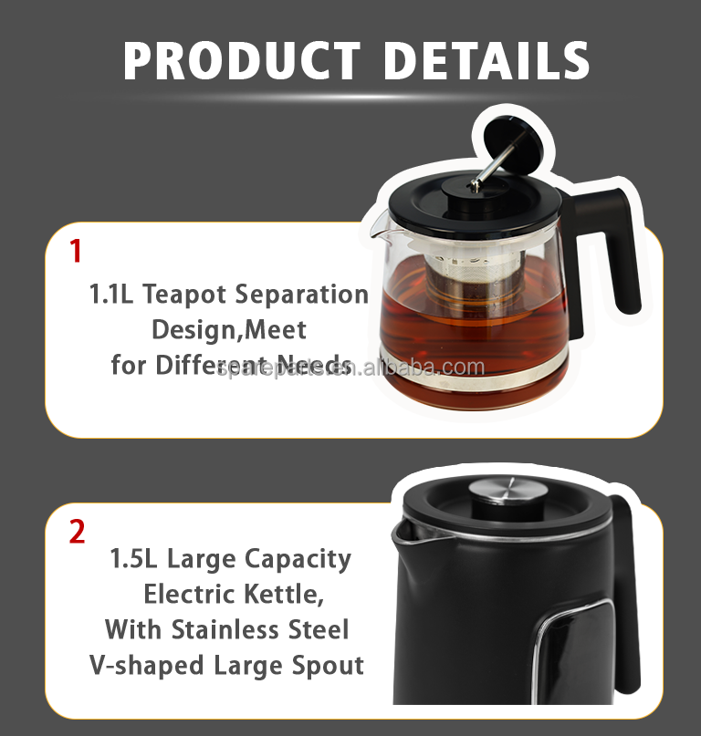 Juego de Teteras Dobles para el Hogar y Hoteles, Hervidor de Agua Eléctrico Inalámbrico de 1500 W con Función de Mantener Caliente y Pantalla LED