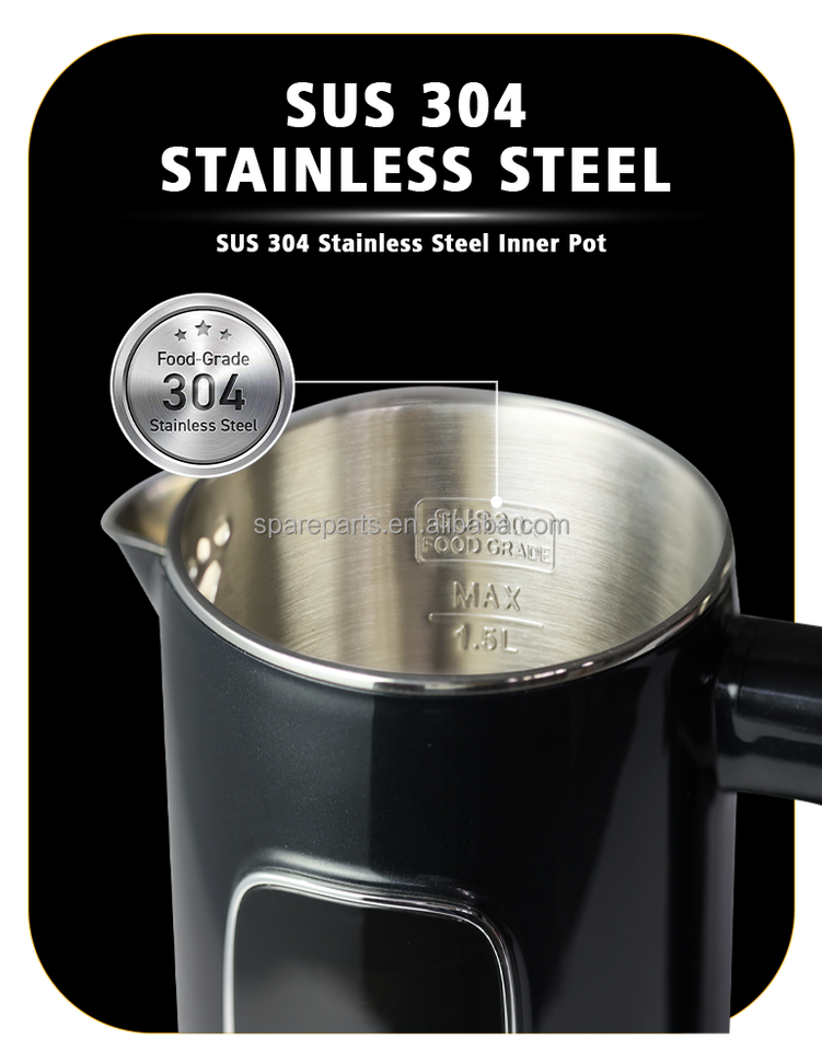 Material del cuerpo:Interior del hervidor de acero inoxidable SUS304 con carcasa de plástico