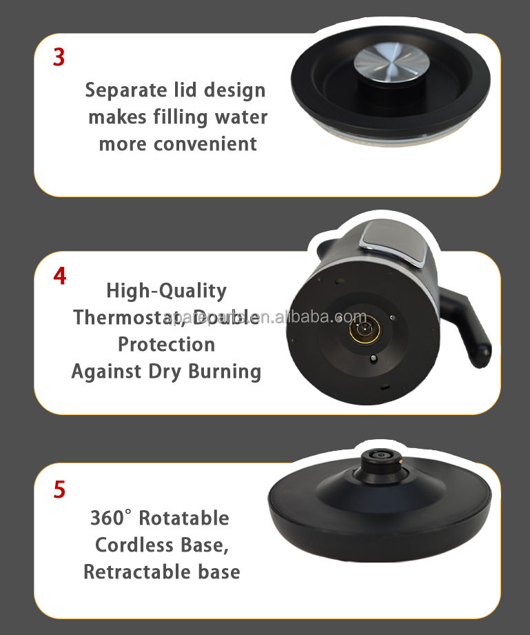 Base rotatoria de 360 grados, Inalámbrico, Mantener el calor, Control de temperatura, Multi-Control de temperatura, Hervir seco protección