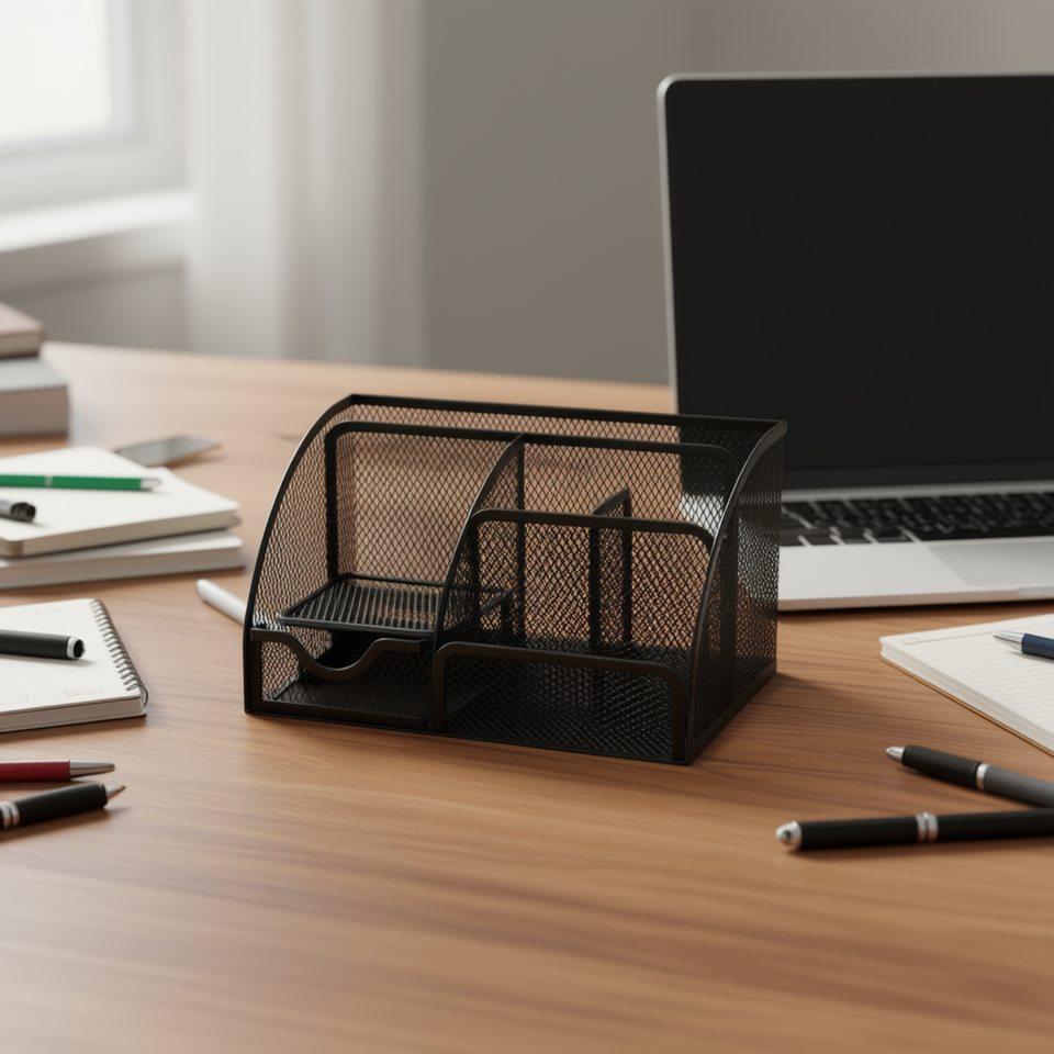 Organizador de Escritorio Metálico Homeera, Pintado en Negro, para Suministros de Oficina y Escolares