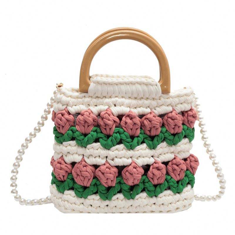 Bolso Bandolera Artesanal Duradero de Tela Tejida a Mano con Diseño de Tulipanes, Material DIY con Forro de Poliéster, Regalo para Novia