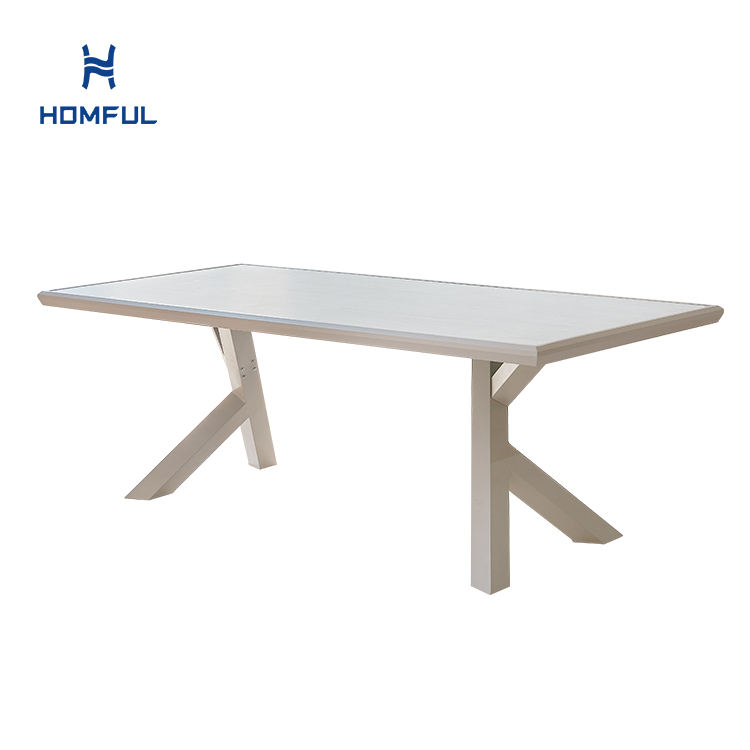 Mesa de Comedor Rectangular de Aluminio para Exteriores Homful, 210 x 97 cm, Superficie de Imitación Madera PS, Muebles para Patio, Jardín o Terraza, para 6 u 8 Personas
