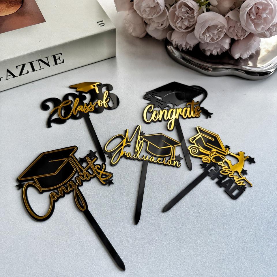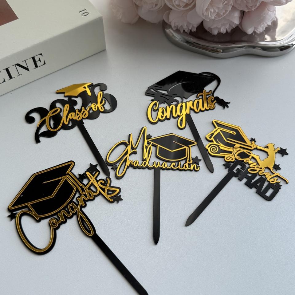 Adorno de Pastel de Graduación con Diseño de Miel y Dulzura, Acrílico, Clase 2026, Decoraciones de Felicitación para Fiestas de Graduación