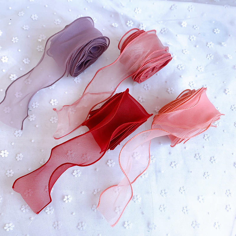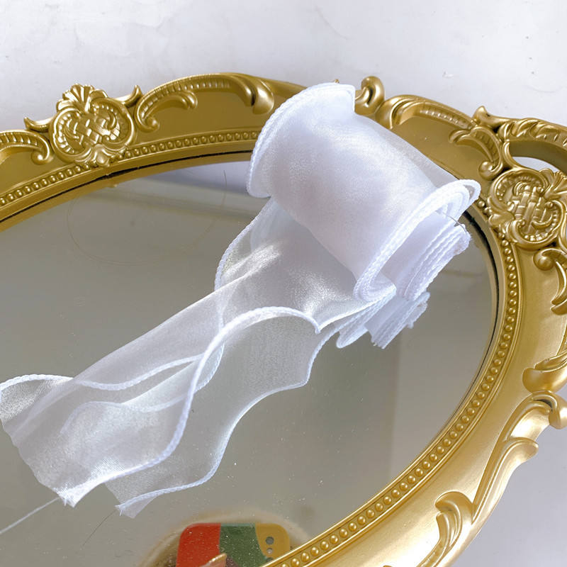 Cinta de tul de color sólido con diseño de cola de pez y bordes ondulados para empaque de pasteles, regalos y ramos 3333158