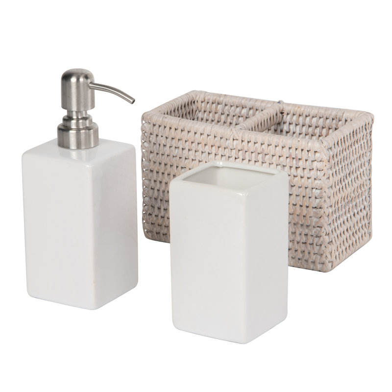 Dispensador de jabón de ratán marrón miel, juego de soporte para cepillo de dientes, decoración de baño tejida