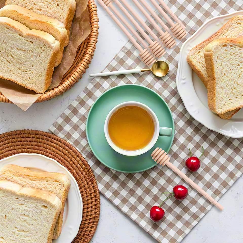 Juego de Palitos para Miel, 4 Agitadores de Miel de 6 Pulgadas con Cucharas de Bambú, Mini Varitas de Madera para Dispensar Miel en Tarros