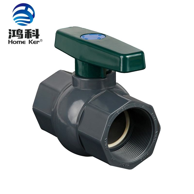 Válvula de bola octogonal de PVC HongKe Jordan con nuevo mango verde profundo y conexión de rosca de cuerpo gris profundo