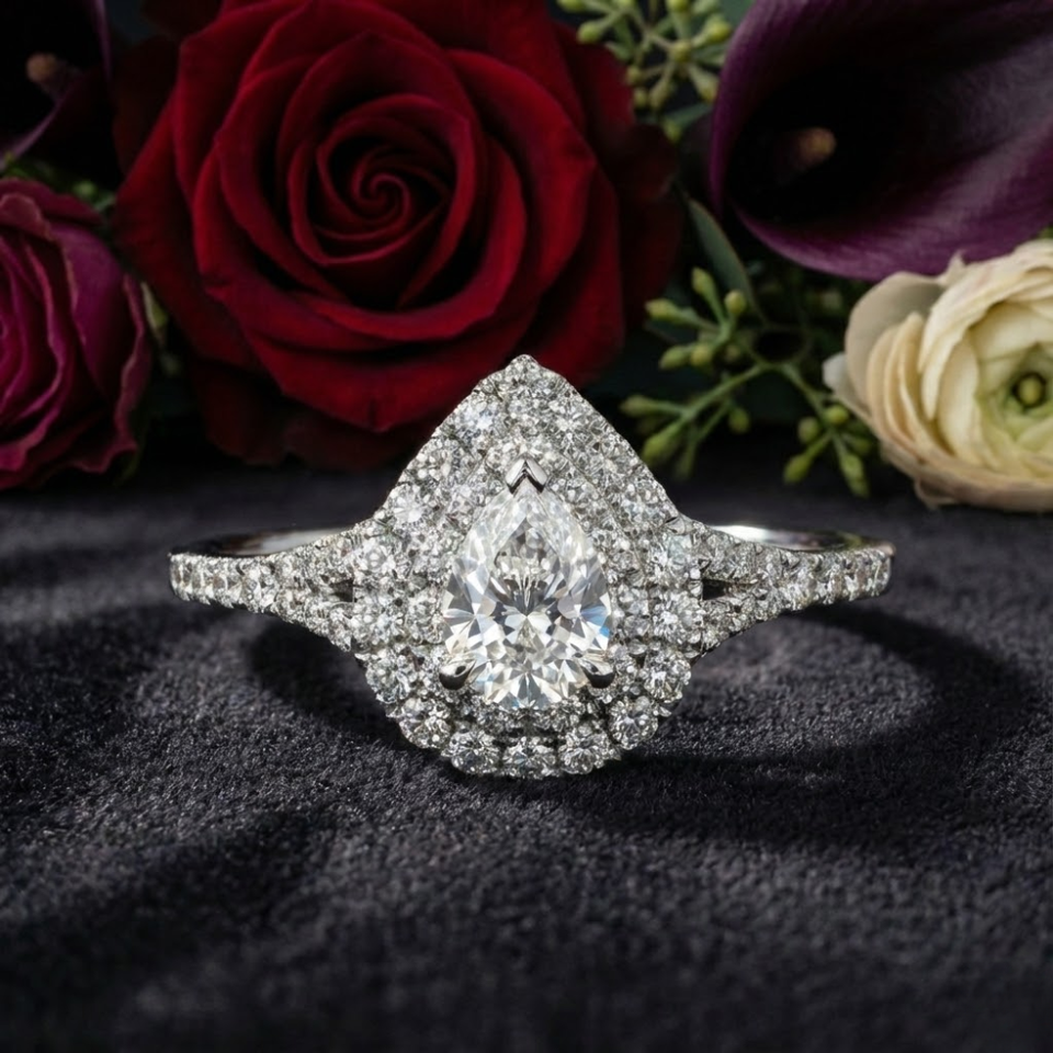 Product name:18k Diamond Pear Shape Semi Mounting Ring