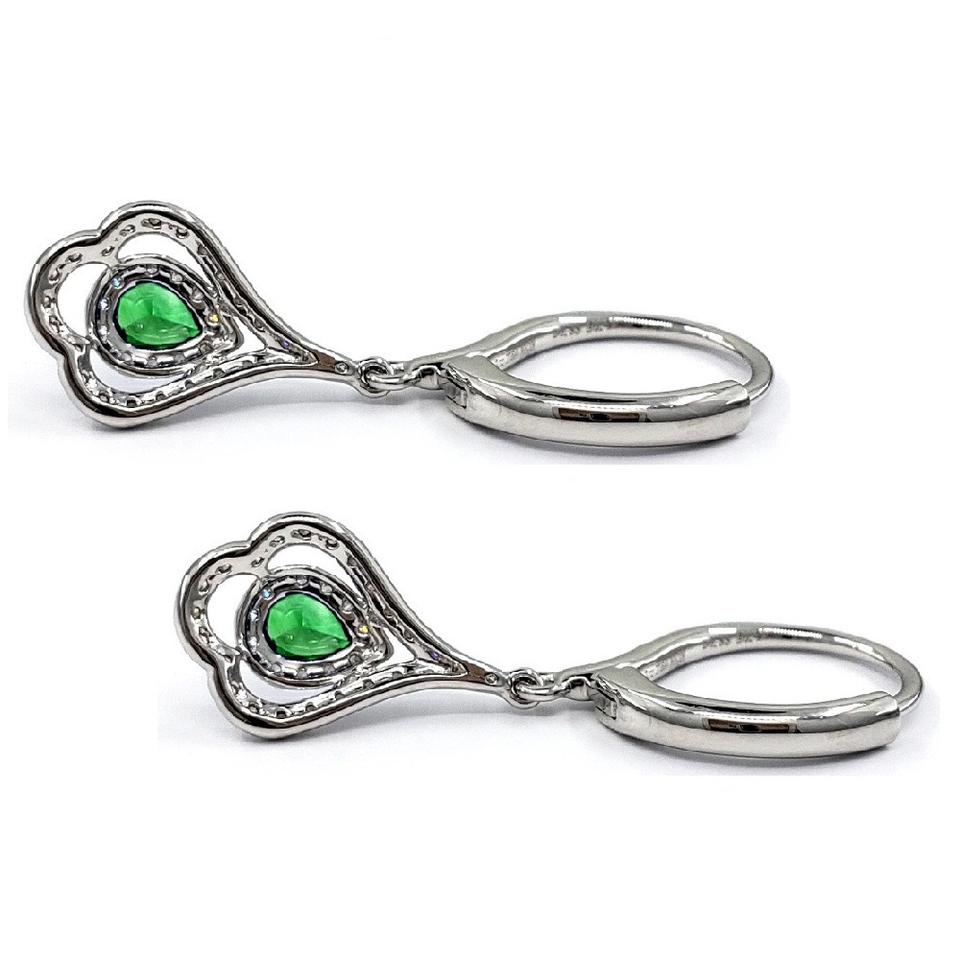 HongKong Claw Setting Buena calidad 18K Oro blanco Verde Esmeralda Joyería fina Regalo DE BODA Pendientes colgantes