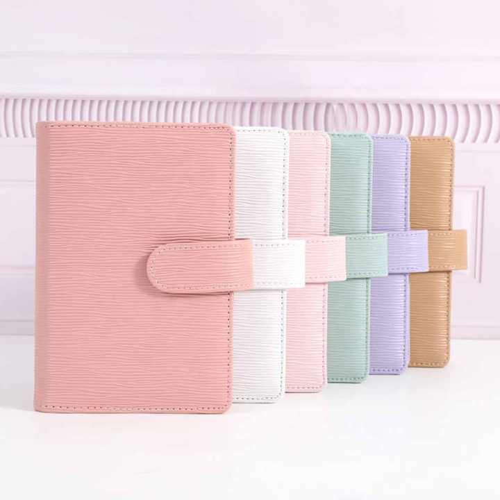 Hongbo superventas A6, carpeta de botones de presupuesto, planificador de Agenda, organizador de billetera de cuero Saffiano Epi de 27 colores, cuadernos de 6 anillos dorados