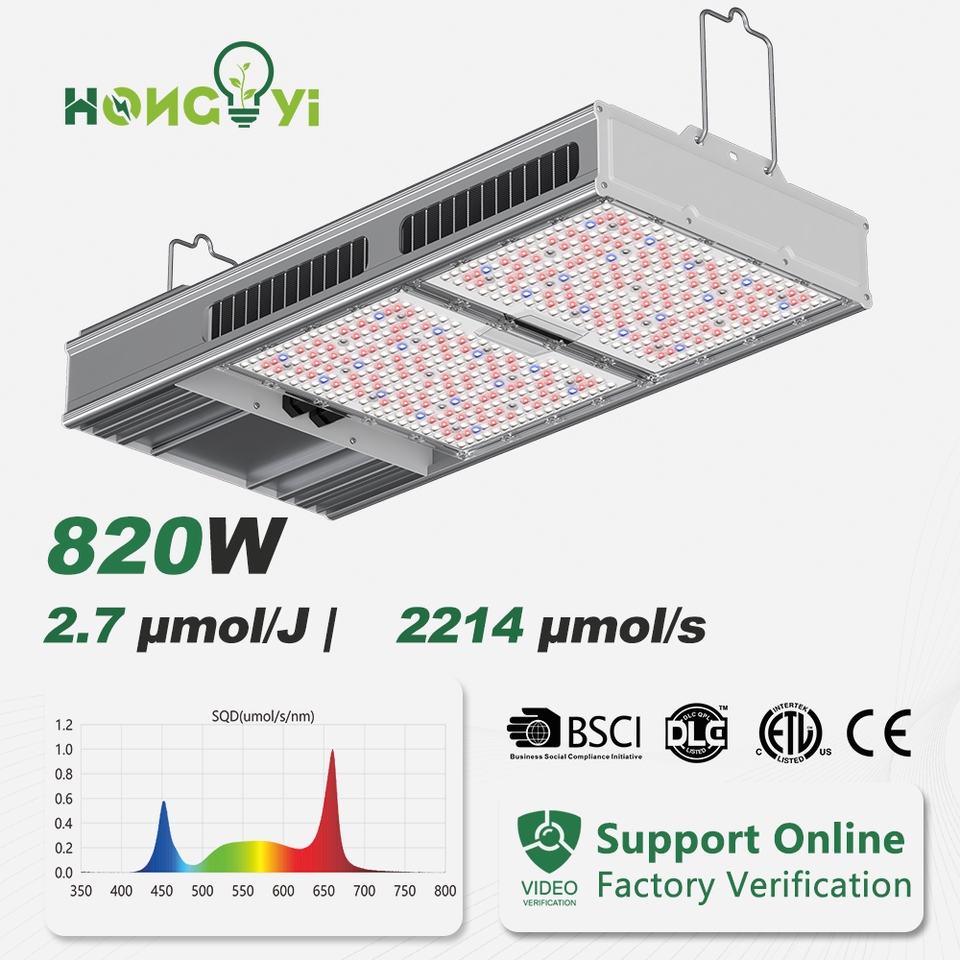 Lámpara de Cultivo LED de Espectro Completo Hongyi Hydroponics de 820w, Reemplazo de la Lámpara de Cultivo Gavite 1930 E HPS de 1000W