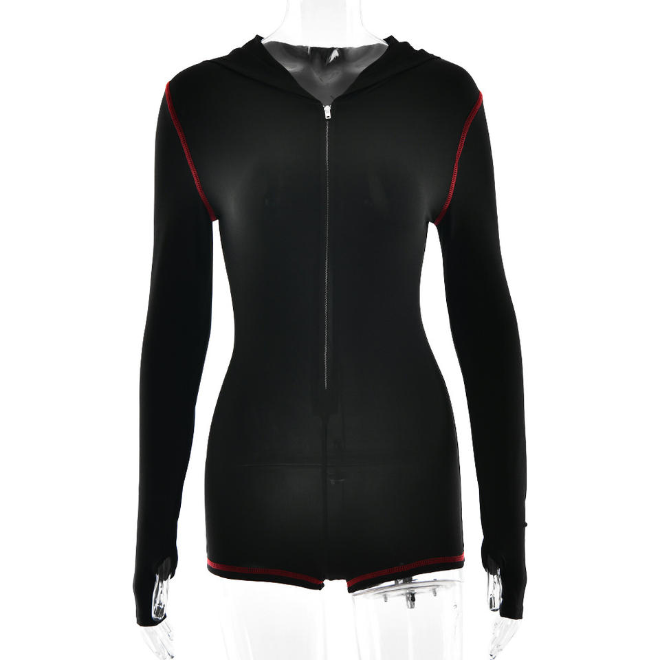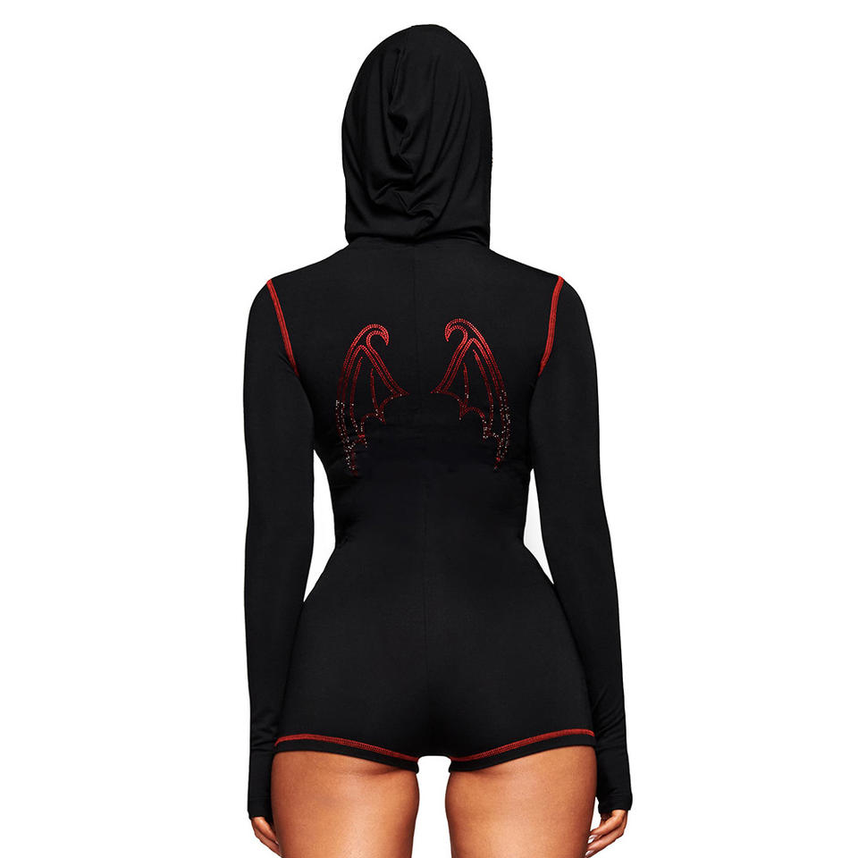 Hooded Bodysuit With Rhinestone Wings Long Sleeve Slim Fit For Yoga And Dance