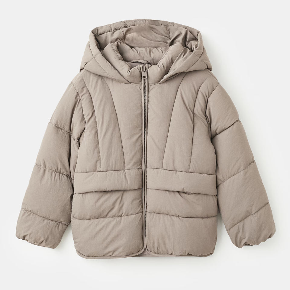 Chaqueta Acolchada con Capucha para Niñas, Cierre Frontal con Cremallera, Tejido Ligero pero Aislante, Cuello Alto con Capucha Ajustable con Cordón