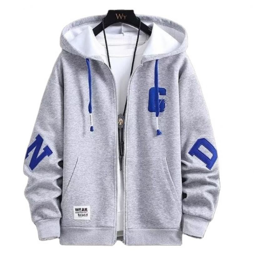 Chaqueta con Capucha para Hombre, Corte Regular, Estilo Béisbol, con Cierre, Nueva Tendencia de Moda, Abrigo Casual con Estampado Ecológico