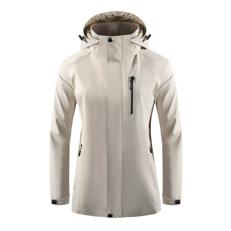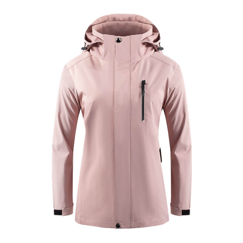 Chaqueta cortavientos de una sola capa con capucha para mujer, color rosa, ropa de trabajo para invierno y exteriores con forro interior.
