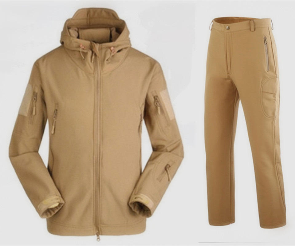 Conjunto de chaqueta de concha suave con capucha a prueba de viento impermeable cálido al aire libre Piel de tiburón abrigo y pantalones para hombres