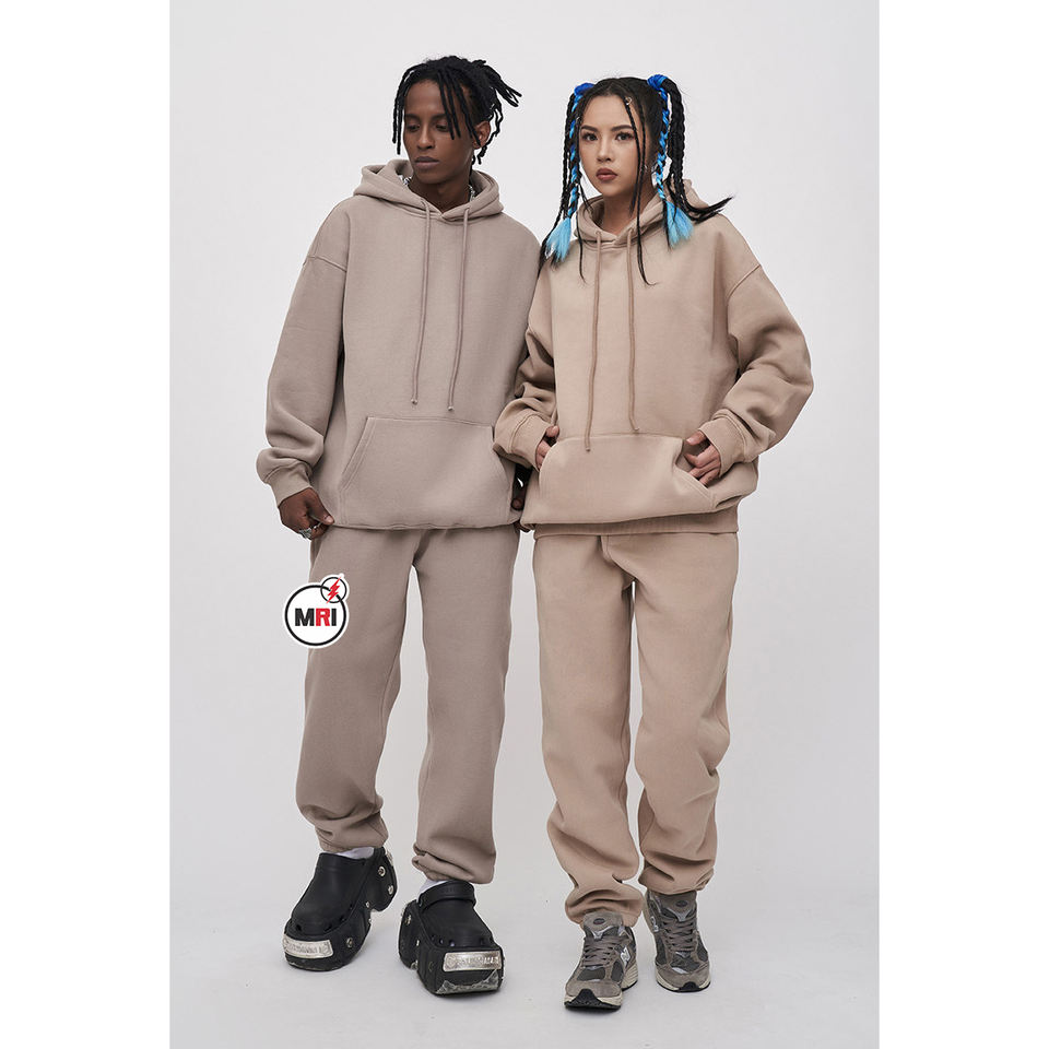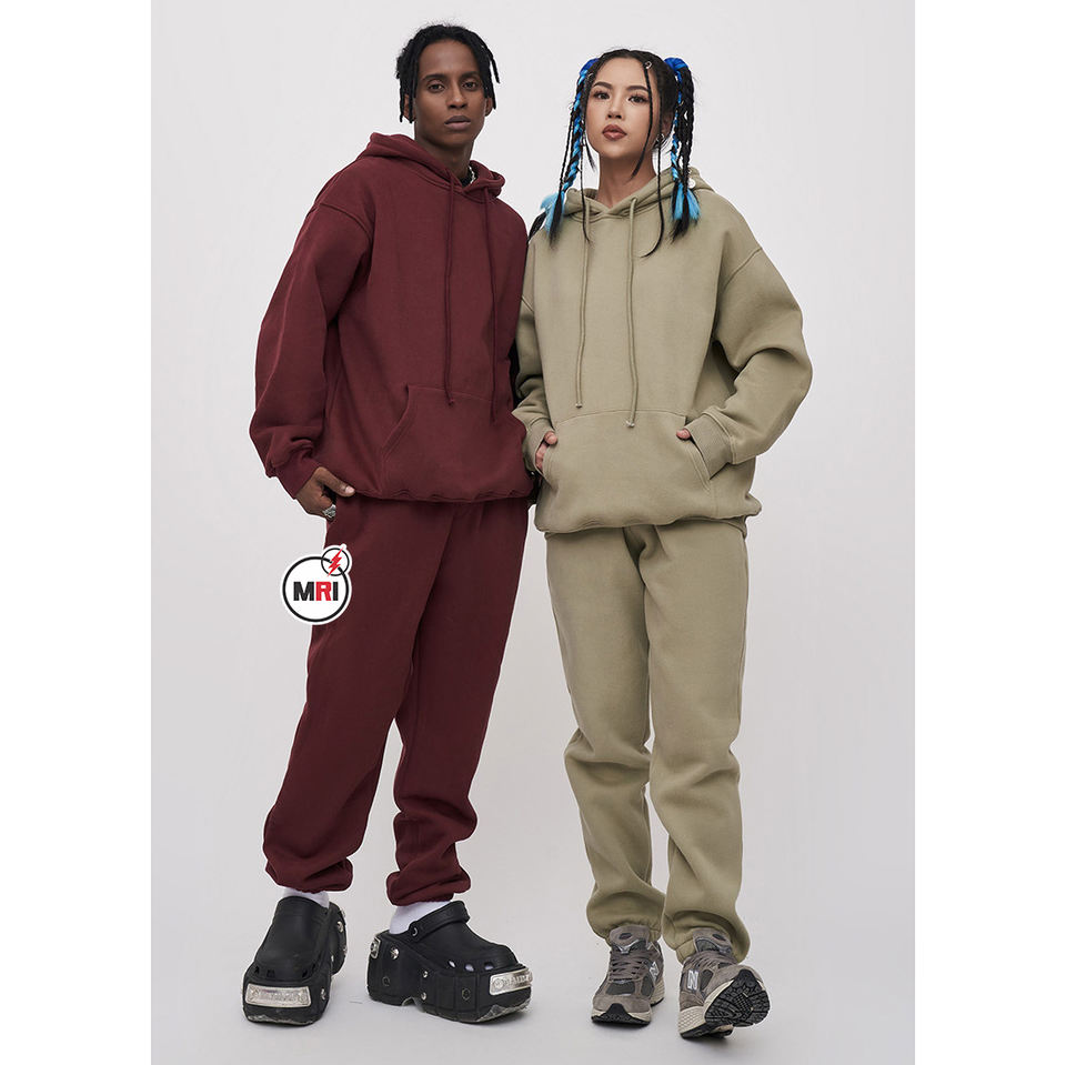 Pantalones apilados unisex para correr, chándal de calle de estilo sólido de invierno, chándal transpirable con logotipo personalizado para hombres y mujeres, conjunto con capucha